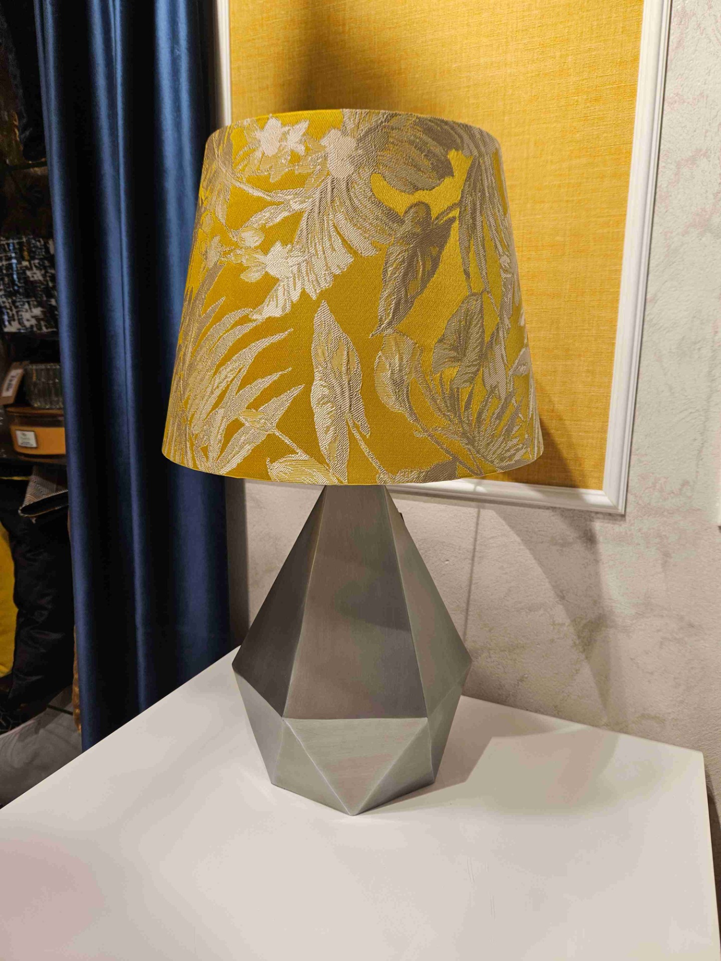 Elegantní a stylová kovová základna lampy Trinity má matný šedý povrch. Její originální tvar připomíná diamant. Noha zapadne do moderního interiéru, zejména v industriálním nebo minimalistickém pojetí. Lze ji sladit s různými vzory a barvami stínidel, stačí si vybrat.